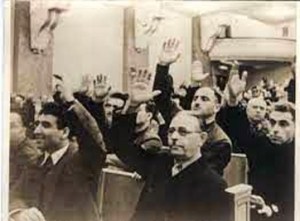 Əllər meşə kimi ucaldı zalda!